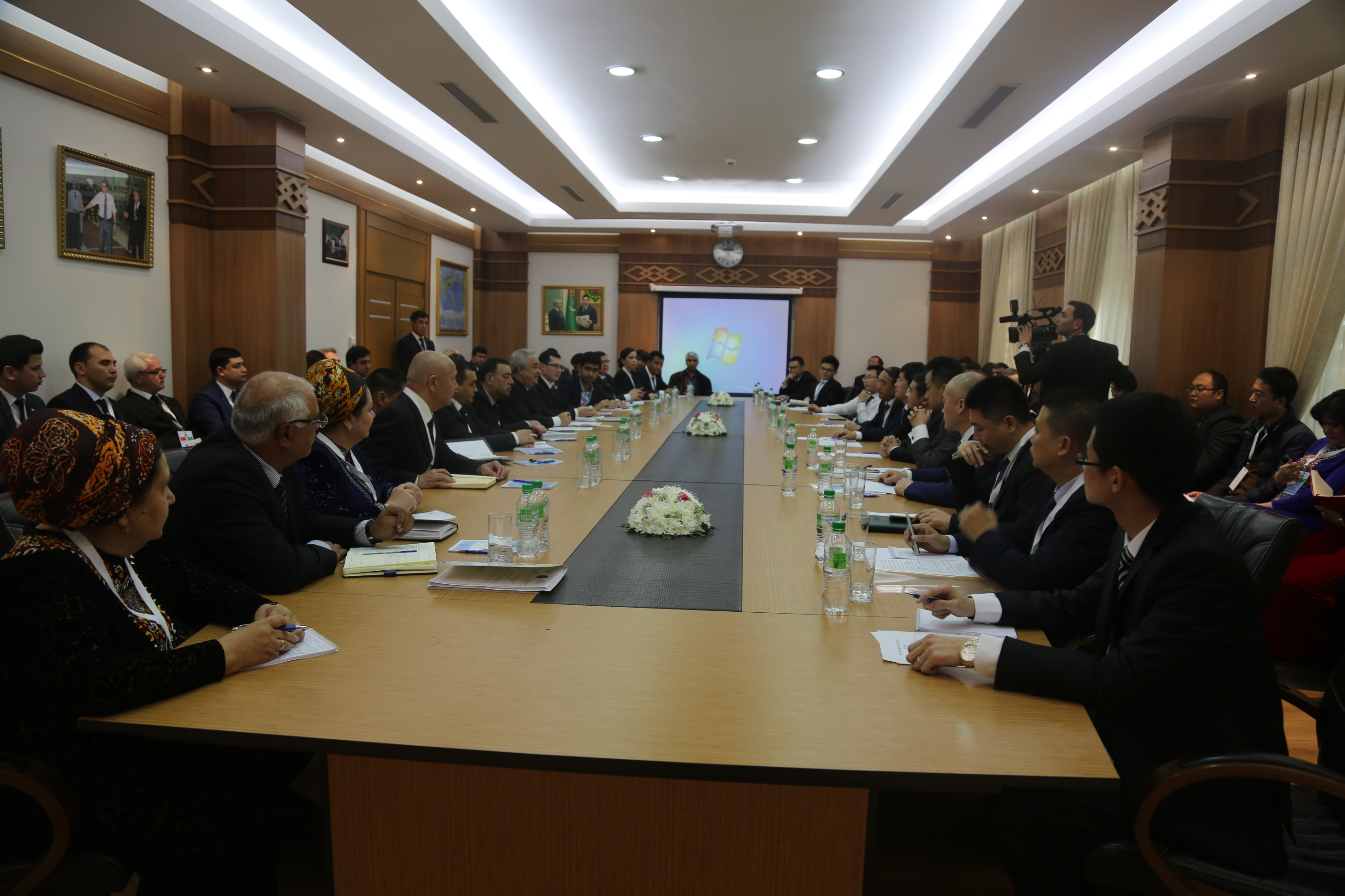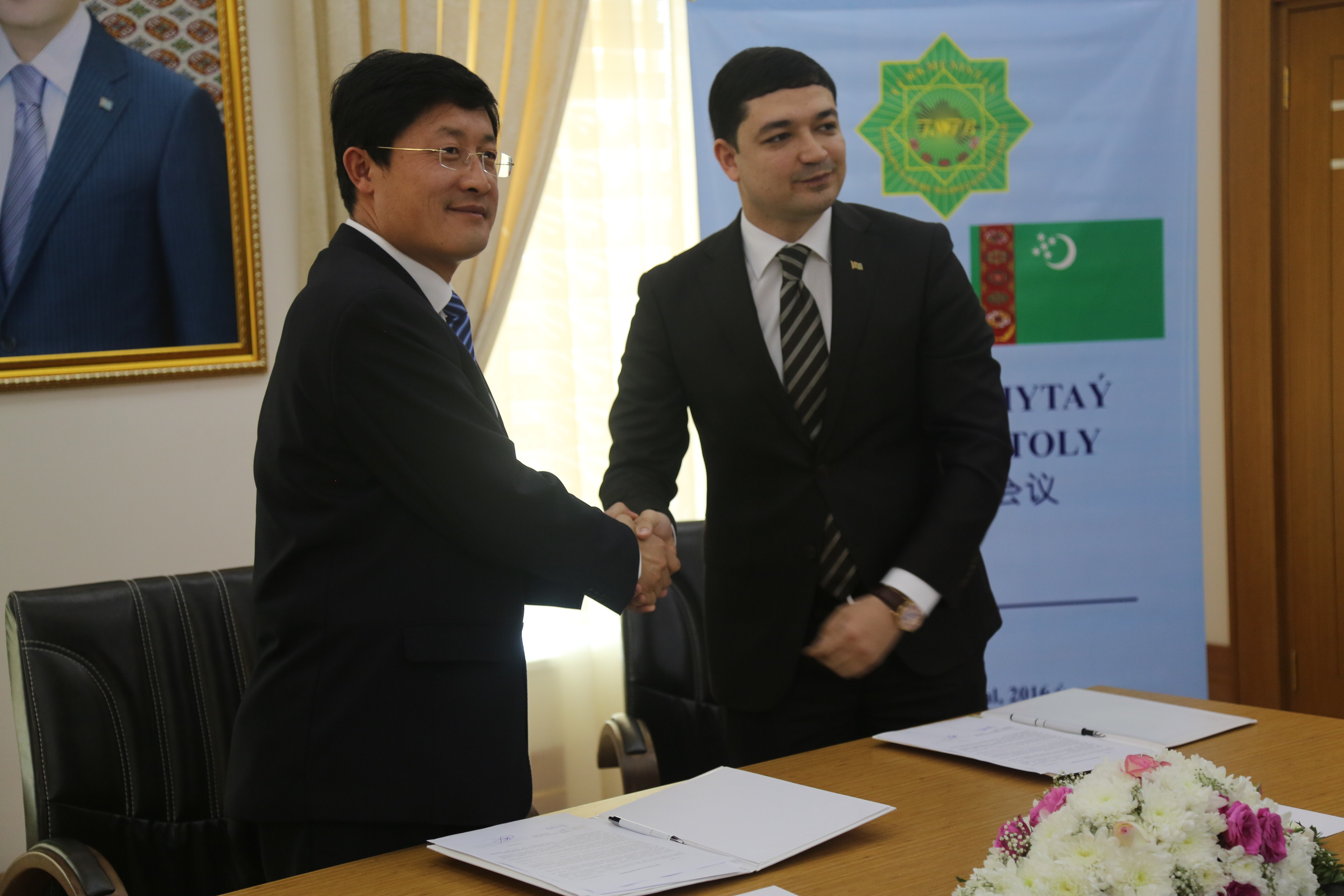 2016年2月21日至26日北京三川世紀(jì)能源科技股份公司董事長郭海波一行4人受土庫曼斯坦工業(yè)企業(yè)家聯(lián)盟主席達(dá)達(dá)耶夫的邀請參加土中貿(mào)易圓桌會、洽談合作事宜,土庫曼斯坦當(dāng)?shù)匦侣劽襟w爭相報道,公司董事長多次接受土庫曼斯坦國家電視臺的采訪。